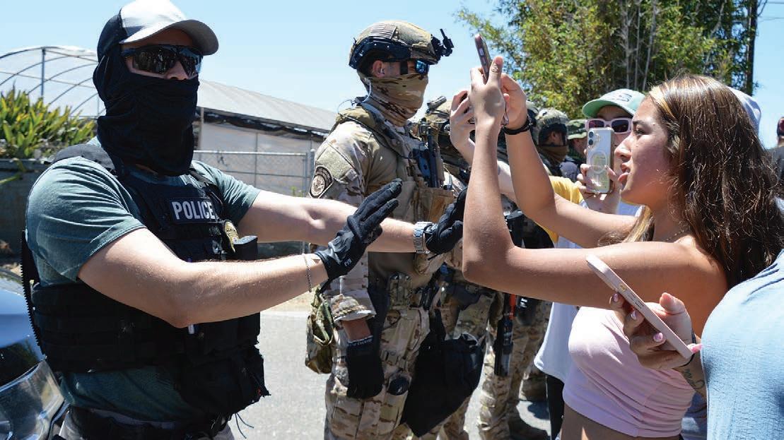 After ICE arrived, a large crowd began to form near the cannabis operation, yelling at the o cers to let the detained workers go. Members of the Homeland Security deployed smoke bombs and flash grenades into the crowd, and a few protesters threw rocks. There were two injuries reported: Vice Mayor Mónica Solórzano fell to the ground and was bleeding after agents deployed a flash grenade; and one ICE agent received stitches in his hand after a protester threw a rock, the Department of Homeland Security said this week.