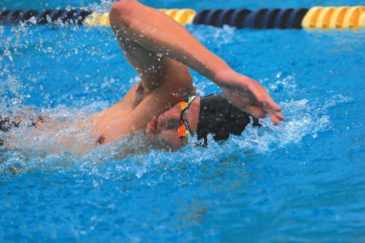 Giulia Piccoletti led the way for the girls in her final performance at home, turning in first-place finishes in both the 100-yard butterfly and breaststroke. The girls had three more double-winners on the day — sophomores Lucy Moore and Hazel Dugré, and freshman Madison Lee — giving the Warriors a comfortable 10757 team win.