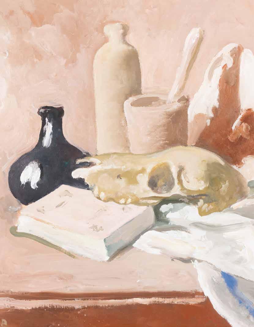 “Natura morta con cesta e piccione”, 1942-43, olio su tavola, firmato in basso a destra 33x41 cm.