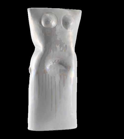 “Senza titolo”, scultura in metallo argentato, firmata in basso 31x9x8,5 cm.