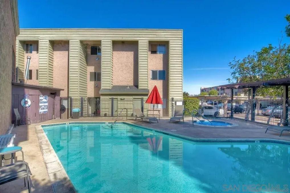 Laundry is an all in one combo washer/dryer which saves space. Private patio with storage closet. Great opportunity for living at the beach without breaking the bank! HOA covers common area, landscaping, building maintenance, roof, Spa & Pool, trash & water.