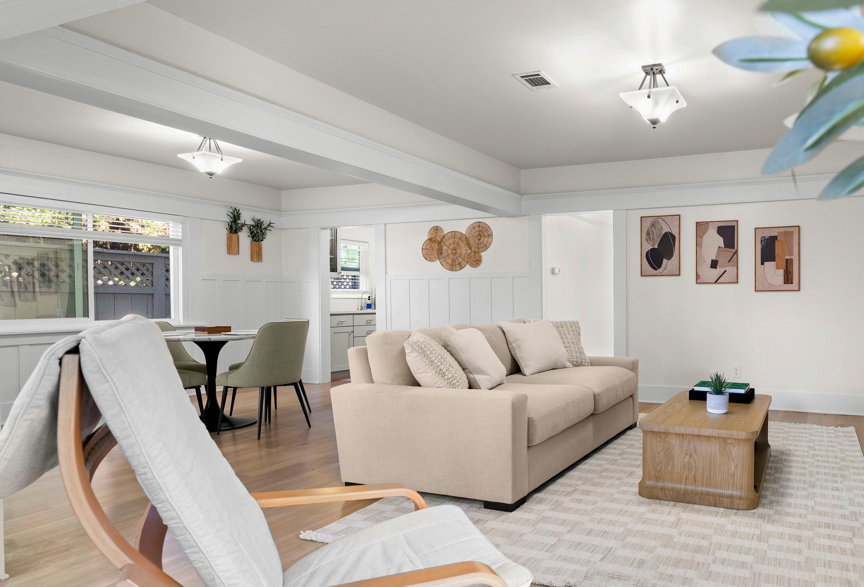 Tucked gracefully behind its storybook facade, this captivating Coronado residence captures the essence of refined coastal living with an inviting blend of warmth, style, and sophistication. Thoughtfully refreshed with a crisp new exterior and curated updates throughout, the home radiates an airy, light-filled ambiance that feels instantly relaxing. The open living area is centered around a classic fireplace and flows seamlessly into the dining and kitchen spaces-perfect for both intimate evenings and casual entertaining. Modern comforts including a new roof, dual-pane windows, upgraded A/C system, and sleek new appliances complement timeless architectural character and a soft, coastal-inspired palette. Upstairs, a versatile bonus room offers space to unwind or create, while the detached studio invites endless possibilities-an inspiring home office, tranquil guest suite, or artful retreat. The expansive 5,825-square-foot lot enhances the sense of privacy and potential, with a detached one-car garage and a backyard ideal for entertaining, gardening, or envisioning a future addition or ADU. Perfectly nestled in the heart of Coronado Village, this home places you just moments from charming cafes, boutique shops, lush parks, and the island’s iconic beacheswhere every stroll feels like a seaside escape and life moves at the gentle pace of the ocean breeze.