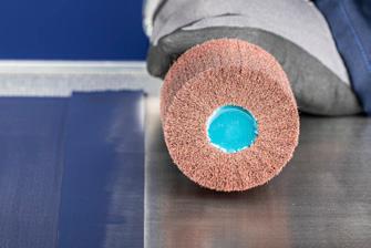 Felt flap discs are used for pre-polishing and high-gloss polishing on medium-sized to large components. Use the hard type for pre-polishing flat surfaces, and the soft type for high-gloss polishing and processing workpieces with lots of contours.