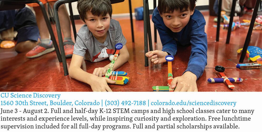 Printed locally by Publication Printers Colorado Parent is published monthly by Geaux Publish, Inc. and distributed free of charge. Subscriptions accepted. Only authorized distributors may deliver and pick up the magazine. We reserve the right to edit, reject, or comment editorially on all materials contributed. We cannot be responsible for the return of any solicited material. Colorado Parent ©2024 Family Resource Group Inc. and Geaux Publish, Inc. All rights reserved. Reproduction in whole or part without written permission is prohibited 1675 Larimer Street Suite 675, Denver, CO 80202 P (303) 320-1000 Visit us online at ColoradoParent.com Distribution + Circulation: circulation@coloradoparent.com