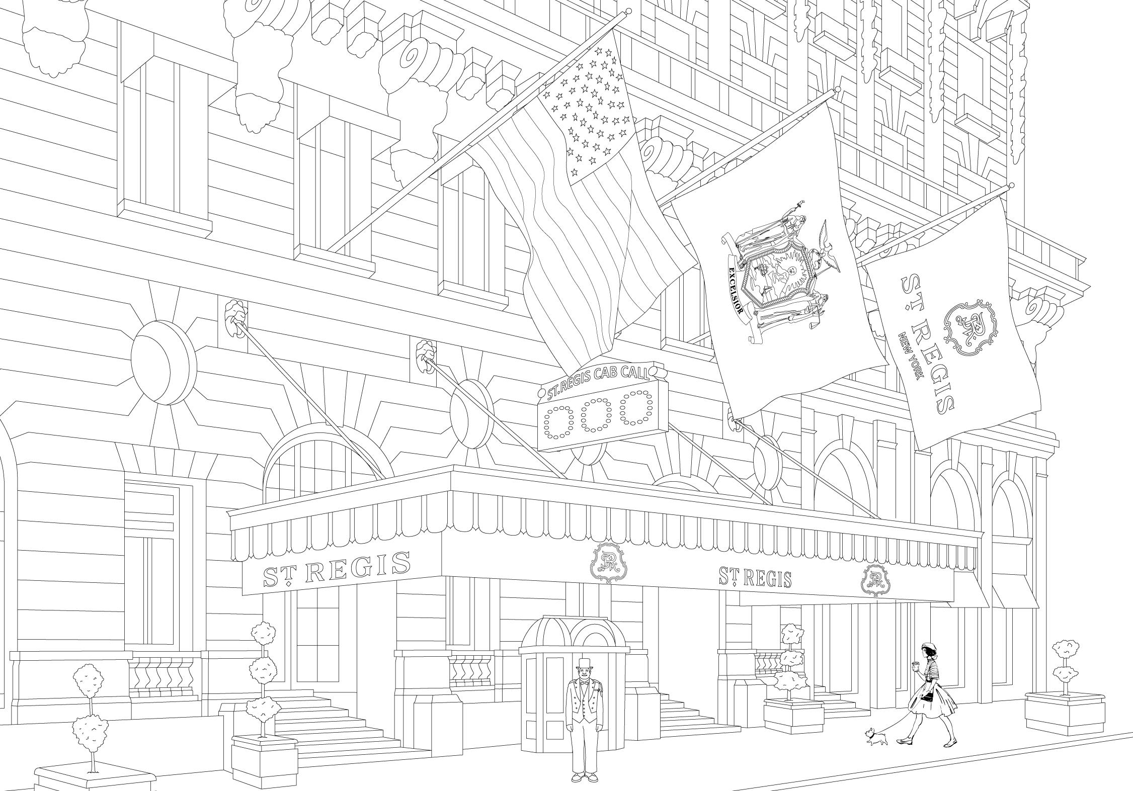 Color Our Town coloring books illustrate the beauty and diversity of America’s cities. For The St. Regis New York, Jake collaborated with the talented Joni McKown to create this beautiful coloring guidebook, celebrating New York City and the iconic St. Regis Hotel.