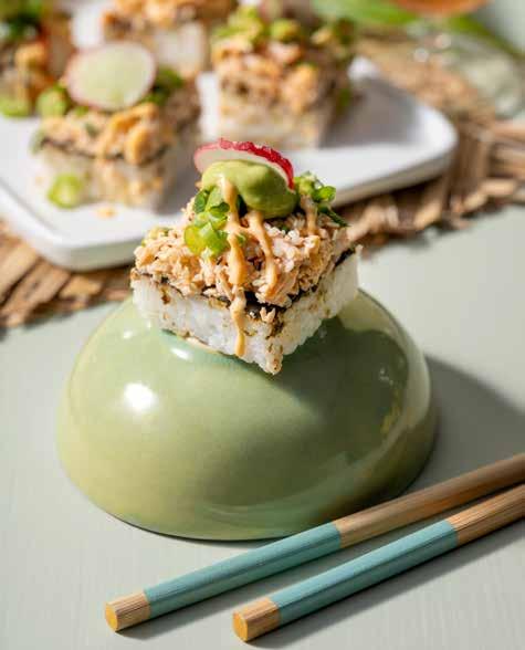 61 Baked sushi au saumon, oignon de printemps et avocat