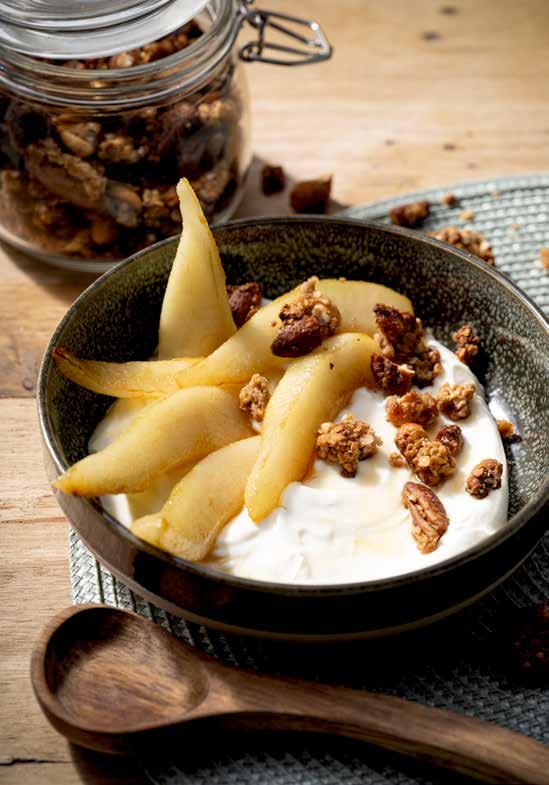 11 Granola épicé à la poire, poires caramélisées et fromage blanc