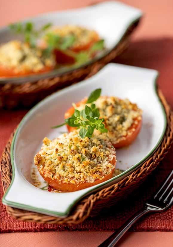 2. Coupez les tomates en deux et disposez-les dans un petit plat allant au four. Épluchez l’ail et écrasez-le par-dessus. Ajoutez les brins de romarin et de thym et les feuilles de laurier et assaisonnez de poivre et sel. Arrosez abondamment d’huile d’olive et enfournez pendant 1 h.