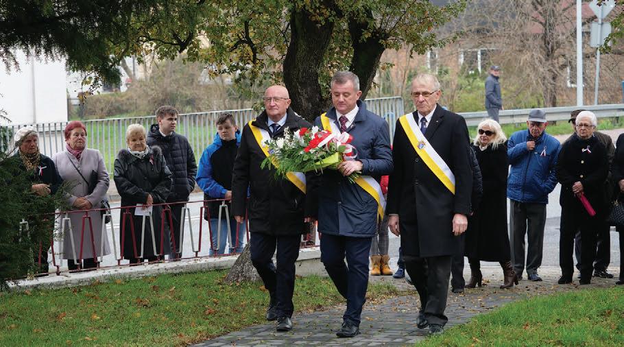 Members of St. John Paul II Council 17645 in Szczekociny carry flowers to be placed on the town’s Tomb of the Unknown Soldier during a ceremony on National Independence Day. The council also provided an honor guard for a special Mass preceding the ceremony at St. Bartholomew the Apostle Parish.