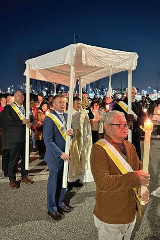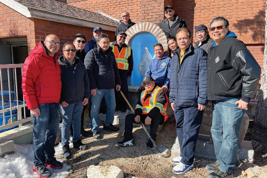 Knights and family members from Bacnotan Council 4490 in La Union, Luzon North, prepare to plant trees at St. Michael the Archangel Parish. The council received 300 free seedlings of various fruit trees from the city’s Environment and Natural Resources O ce and partnered with the Diocese of San Fernando de La Union to distribute them among nearly 30 Catholic parishes in La Union province so that any fruit they produce can benefit community members in need.