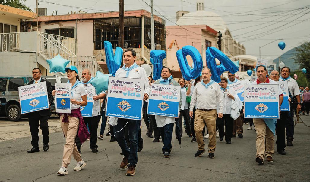Knights from several local councils and their family members, joined by o cers from the Mexico Northeast State Council, carry signs reading “Me Late El Corazón,” or “My Heart Beats” during a march in support of women and life in Monterrey last fall.