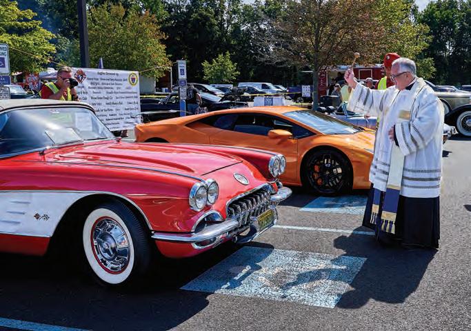 of the Co-Cathedral of St. Robert Bellarmine and chaplain of Freehold (N.J.) Council 1672, blesses a classic Corvette convertible during the council’s annual car show. The event raised $8,600 for the council’s charity fund.