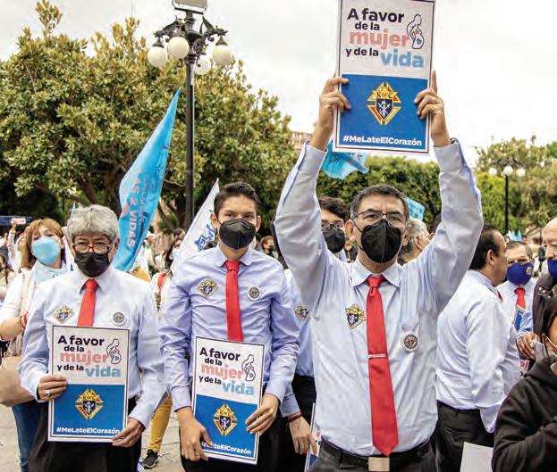 Knights from several councils in Mexico Central demonstrate during the March for Women and Life in San Luis Potosí. The Knights provided security for the march, which is an annual event of the Archdiocese of San Luis Potosí, and donated 500 pro-life signs for participants to carry. The march concluded with a Mass celebrated by Archbishop Jorge Alberto Cavazos Arizpe at the Shrine Basilica of Our Lady of Guadalupe.