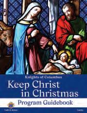 The Knights of Columbus is committed to bearing witness to the true meaning of Christmas through its Keep Christ in Christmas program. Councils are urged to promote the seasons of Advent and Christmas through activities centered on the example of the Holy Family and the Nativity of Christ. These include: Journey to the Inn, Spread the Light of Christ, Crèche or Advent Wreath Blessing, and the Christmas Poster Contest. For more information and resources, visit kofc.org/christmas.