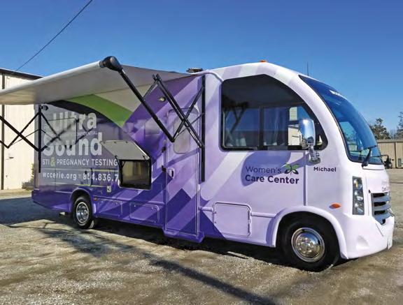 U góry: Od lewej: Dave Spacht, Phil Legler i Greg Penco z kilkoma spośród tysięcy dziecięcych butelek, których Rycerze używali, by zebrać 109 tysięcy dolarów na mobilny gabinet USG. • Na kolejnej stronie: Gotowy pojazd, wyposażony przez Mission Mobile Medical w Karolinie Północnej, czeka na dostarczenie do Centrum dla Kobiet w Ciąży Hrabstwa Erie.