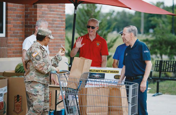 Delegat Rejonowy Fred Beata (w środku) i inni członkowie rady 11170 w Fort Belvoir (Wirginia) witają się z żołnierzem przed magazynem zaopatrzeniowym zainicjowanej przez radę akcji „Nie opuszczaj rodziny żołnierza w potrzebie”. Rycerze dostarczyli bony podarunkowe o łącznej wartości ponad 10 tysięcy dolarów, aby pomóc zakupić żywność ponad 300 rodzinom żołnierzy w okresie Bożego Narodzenia.