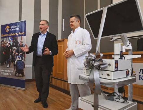 Najwyższy Rycerz Patrick Kelly niesie przesłanie solidarności dla Kościoła, władz, Rycerzy i przesiedlonych rodzin w Polsce i Ukrainie.
