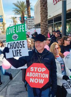 Mark Gilmour, life director of St. Thomas More Council 17996 in Henderson, Nev., holds up a “Love Life, Choose Life” sign during the annual Las Vegas Walk for Life sponsored by First Choice Pregnancy Services. Nevada State Council o cers joined members of Council 17996 and St. Viator Council 8282 at the walk. Councils throughout the state provide frequent financial and spiritual support to First Choice.