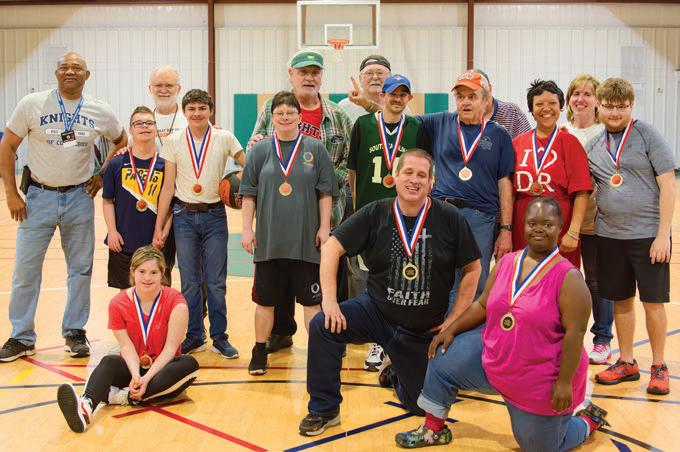 Fourth Degree Knights from Texas District #2 provided a color guard for a press conference before the Special Olympics Texas Summer Games in San Antonio. Knights from several councils also volunteered in di erent capacities for the event, held over four days at the Alamodome.