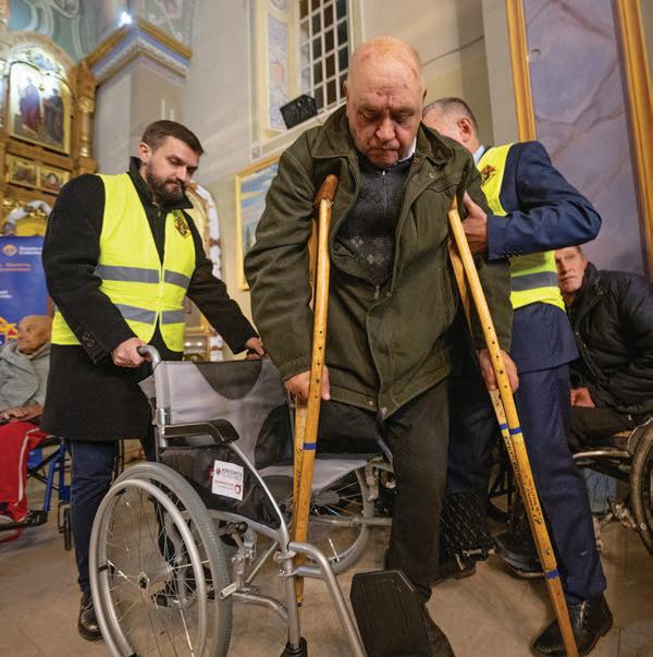 e Order’s involvement in Ukraine, he added, di ers from that of other aid agencies because its Catholic identity is intrinsic to its work. e name “Mercy Center” points to the Knights’ motivating force. Charity — not only humanitarian aid — was the goal of Blessed Michael McGivney, and charity is derived from and re ects the mercy and love of God. Such