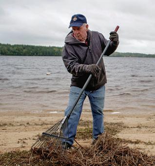 El ex Gran Caballero Ron Metevier del Consejo 6850 St. Joseph’s-St. Raymond en Epping, N.H., limpia los escombros de la orilla del lago en el Campamento Fátima para Niños, un campamento de verano patrocinado por la Diócesis de Manchester. Desde 1953, los Caballeros de todo el estado y sus familias han celebrado una jornada de trabajo anual en el Campamento Fátima para prepararlo para la temporada de campamentos de verano. Este año, los voluntarios trabajaron en proyectos de plomería y electricidad, además del mantenimiento general.
