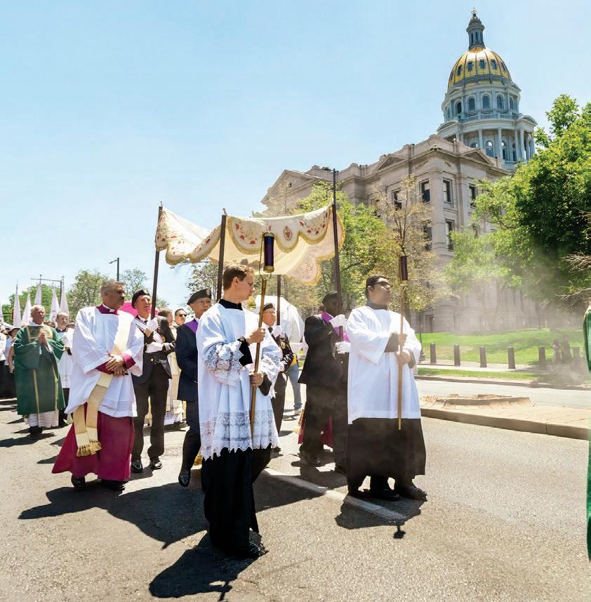 Des milliers de Chevaliers et leurs familles participent au pèlerinage eucharistique national historique.