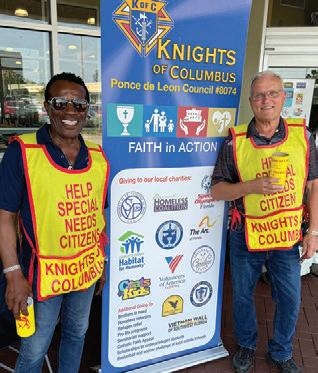 Ivan Pierre (à gauche) et l’ancien Grand Chevalier Ed Kelly du Conseil 8074 Ponce de Leon à Punta Gorda, en Floride, recueillent des dons lors de la collecte annuelle de fonds du conseil pour les personnes handicapées. Les Chevaliers ont amassé 19 000 $ en six mois, auxquels ils ont ajouté 12 000 $. Les fonds seront distribués parmi quatre organismes qui servent des personnes ayant des besoins particuliers, notamment les Jeux olympiques spéciaux de Floride et les programmes locaux d’éducation spécialisée.