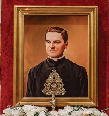 L’abbé McGivney était prêtre depuis moins de cinq ans, mais, pourtant, ses paroles et ses gestes, comme le rapporterait le New Haven Daily Palladium, révélaient un prêtre conforme au cœur eucharistique de Jésus, un cœur dé ni par l’obéissance au Père et un amour sacri ciel pour les dèles. Il a parfois été dit que l’abbé McGivney ne croyait pas que son ministère « se terminait avec la messe », ce qui est, d’une certaine façon, manifestement vrai : Dès ses premiers jours à titre de pasteur adjoint à l’église St Mary, il avait vraiment « tout le travail d’une paroisse sur [ses] épaules », comme il l’écrirait l’été après son ordination. Il fonderait les Chevaliers de Colomb plusieurs années plus tard, tout en continuant de répondre aux nombreux besoins de l’église, en organisant des événements paroissiaux et en agissant comme pasteur pour les gens en périphérie, comme Chip Smith. Pourtant, tout ce que l’abbé McGivney faisait était né de la messe et y revenait, exactement comme Vatican II l’a rmerait plus tard : « (…) la liturgie est le sommet