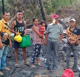 St. James the Apostle à Bohol, Visayas, livrent des fournitures à une famille dont la maison a été détruite dans un incendie la veille. Les fournitures comprenaient du riz, de la nourriture en conserve et des vêtements.