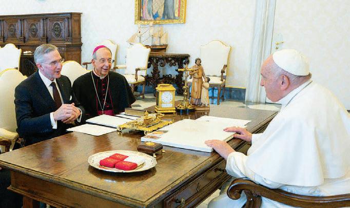 All of this is at the heart, so to speak, of the Order’s new Cor initiative (see page 8), which aims to help men encounter Christ and to live out more fully their mission as Knights and Christians — a mission re ected in Pope Francis’ recent message for the World Day of Prayer for Vocations in April: “We were created by love, for love and with love, and we are made for love. In the course of our lives, this call… enlightens our minds, strengthens our wills, lls us with amazement and sets our hearts a re.” B