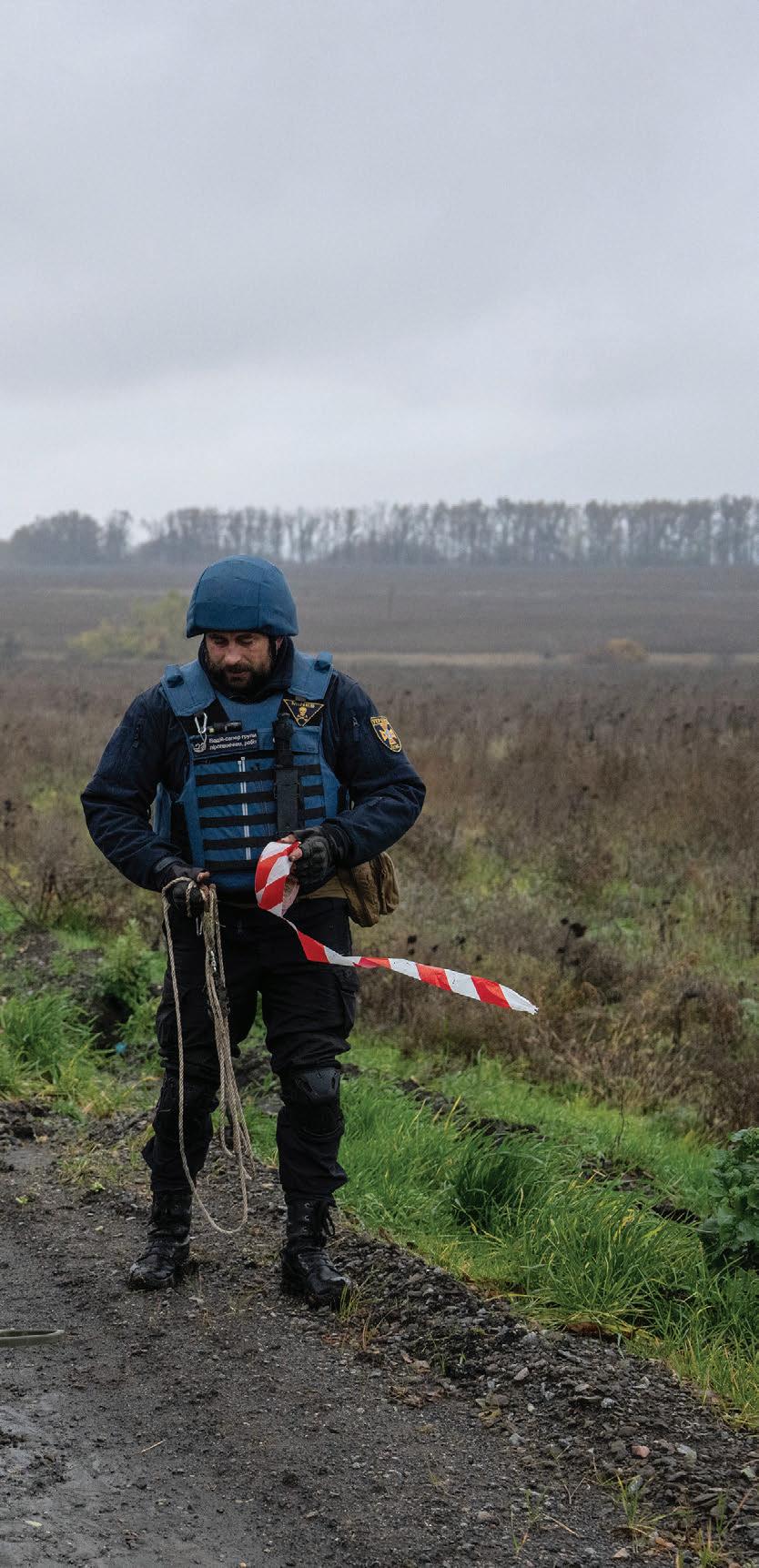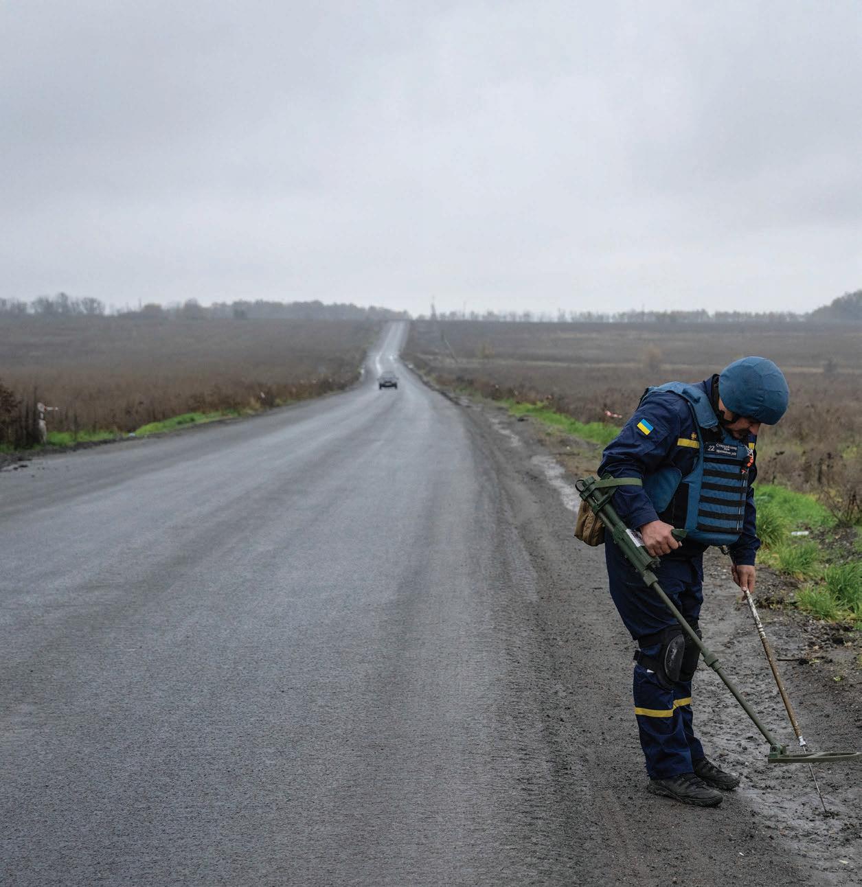 “Tractor drivers have been blown up and people are afraid to go to the elds,” said Ivan Vlasenko, who lives in the Kherson region and works in the agriculture industry. “Although the elds themselves are not heavily mined, there is more of a problem with unexploded rockets.”