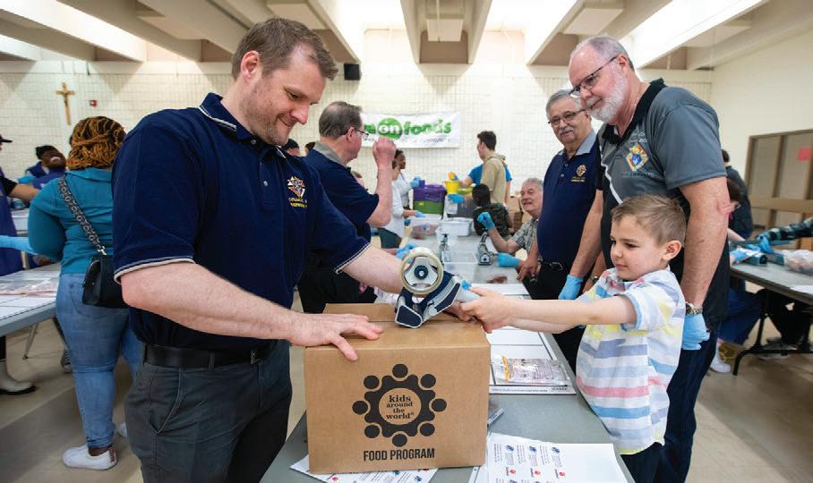 Jonathan Damur, miembro del Consejo Archbishop MacDonald 6083 en Sherwood Park, Alberta, ayuda a su hijo Gabriel a sellar una caja durante Sherwood Park Contra el Hambre, un evento de empaquetado de alimentos en la Parroquia de Our Lady of Perpetual Help. El Consejo se ha asociado con organizaciones locales para patrocinar el evento cinco veces desde 2020. Este año, se recaudaron casi $30,000 dólares canadienses para comprar alimentos, y casi 200 voluntarios empacaron alrededor de 100,000 comidas para su distribución a familias necesitadas, tanto a nivel local como en todo el mundo, a través de la Fundación Enmanuel.
