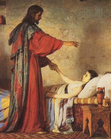 Jesús devuelve la vida a la joven con su palabra y tacto. Nos devuelve la vida a través de los sacramentos, particularmente el sacramento de la penitencia, con las palabras de absolución pronunciadas por su sacerdote. Nosotros también podemos mejorar las vidas de los necesitados que nos rodean, extendiéndoles el amor de Cristo a través de nuestras propias palabras y obras de caridad.