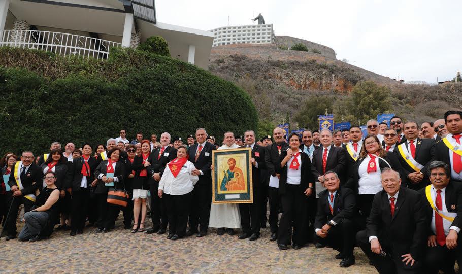 Caballeros y familiares de todo México, incluidos Diputados de Estado de cuatro de las cinco jurisdicciones del país, se reúnen después de la peregrinación anual de Caballeros de Colón al Santuario de Cristo Rey en Guanajuato, en la cima del Cerro del Cubilete. El padre Esteban Martínez, Capellán adjunto de Estado de México Noreste, celebró la misa frente a la ermita del santuario, que el gobierno mexicano bombardeó en 1928, durante un periodo de persecución anticatólica. Tras la liturgia, todos los asistentes realizaron un acto de consagración a San José.