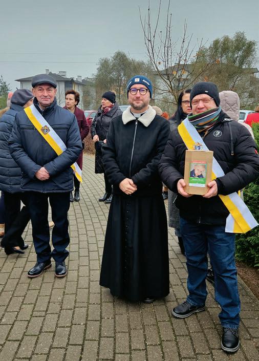 Left: Members of Merciful Jesus Council 16405 and parochial vicar Father Marcin Jędraszek solicit donations outside of Merciful Jesus Parish in Brodnica during a recent drive to support a council member’s nephew, Nicodemus, who was diagnosed with a brain tumor. The drive raised about $2,500 to help pay for surgery to remove the tumor.