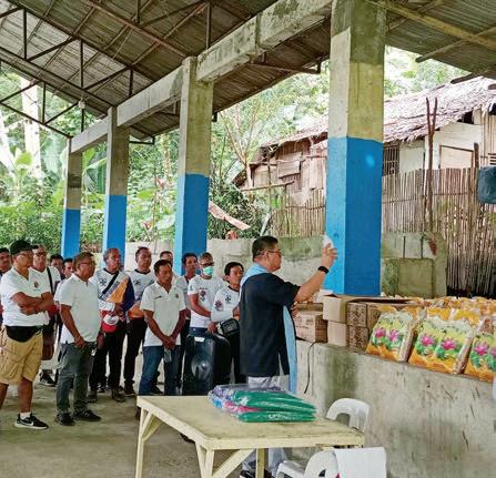 Father Dirk Sanchez, pastor of Nuestra Señora del Rosario Parish in Magallanes, Mindanao, and a brother Knight, blesses food packages prepared by Magallanes Council 7885 for distribution to families in need. The council organizes the distribution twice a year, helping 220 families during the most recent distribution.