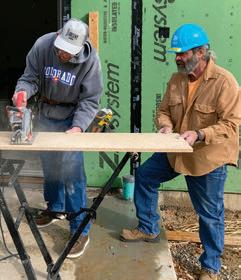 Members of St. Mary Tri-Parish Council 11803 in Rifle, Colo., cut wood during a work day with Habitat for Humanity Roaring Fork Valley, helping construct a new complex of townhomes and condos. This was the council’s first time working with Habitat for Humanity.