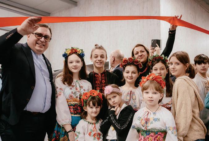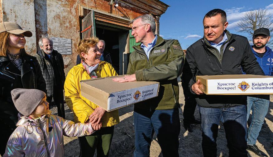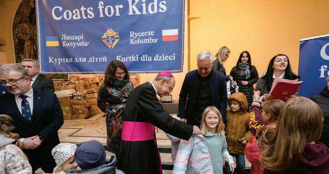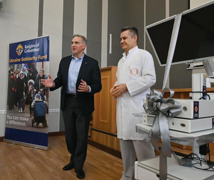 El Caballero Supremo Kelly pronuncia un discurso en el Hospital de Niños Okhmatdyt en Leópolis el 5 de diciembre de 2022, antes de la inauguración de nuevo equipo médico donado por la Orden. Durante su segunda visita a Polonia y Ucrania desde la invasión, del 2 al 6 de diciembre, el caballero supremo se reunió con Caballeros, personas desplazadas y varios líderes religiosos y gubernamentales. La visita también allanó el camino para futuras iniciativas apoyadas los Caballeros de Colón, incluyendo un proyecto de desminado para garantizar la seguridad de las familias y ayudar en la producción de alimentos en Ucrania.