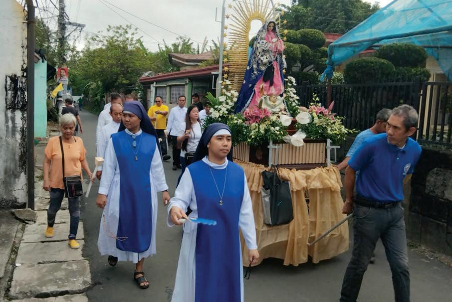 Los Caballeros del Consejo St. Elizabeth of Hungary 16272 de la Ciudad de Malolos, en Luzón Norte, encabezan una procesión con hermanas de los Catequistas Religiosos de María después de la Misa del 12 de diciembre, festividad de Nuestra Señora de Guadalupe. El Consejo 16272 también organizó una novena en anticipación de la celebración del día de la festividad.