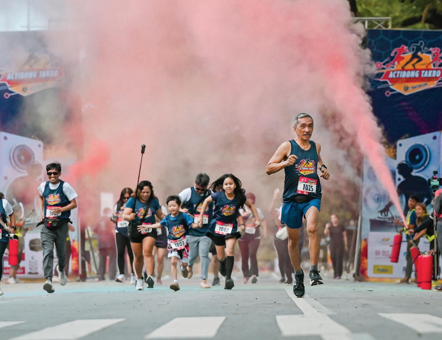Los corredores salen a toda velocidad al comienzo de la carrera anual Actibong Takbo organizada por la Asamblea Ang Bagong Bayani 3655 en la Universidad de Filipinas Diliman en Ciudad Quezón, Luzón Norte. Más de 2,300 personas participaron en el evento, que recaudó 375,500 PHP (unos $6,500) para la renovación de la Iglesia de la Sagrada Familia en el barrio Kamuning de la ciudad.