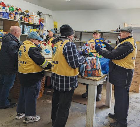 Caballeros del Consejo Bathurst (New Brunswick) 1935 desempacan alimentos donado para el Centro de Voluntarios de Bathurst. Este esfuerzo recaudó más de $200 dólares canadienses en donativos en efectivo y 250 en artículos donados.