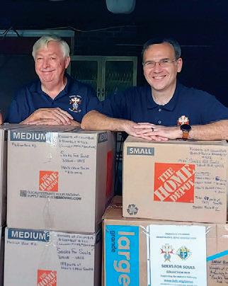 Gary Koening (izq.) y el Fiel Capitán Chris Scott de la Asamblea Bishop Hugh C. Boyle 922 de Washington, Pa., detrás de unas cajas de calcetas que recolectó la asamblea para los veteranos necesitados. Feligreses de 14 iglesias católicas locales participaron en la campaña de la asamblea “Calcetas por Almas”, y aportaron más de 2,700 pares. Los Caballeros donaron las calcetas—la prenda que más solicitaron los veteranos—al Sistema de Salud VA Pittsburgh.