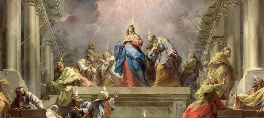 Un cuadro del siglo XVIII representa la venida del Espíritu Santo sobre los apóstoles y María en Pentecostés. Este mes la Iglesia celebra fiesta de Pentecostés el 28 de mayo y la festividad de la Santísima Virgen María, Madre de la Iglesia, el día 29. 14 16