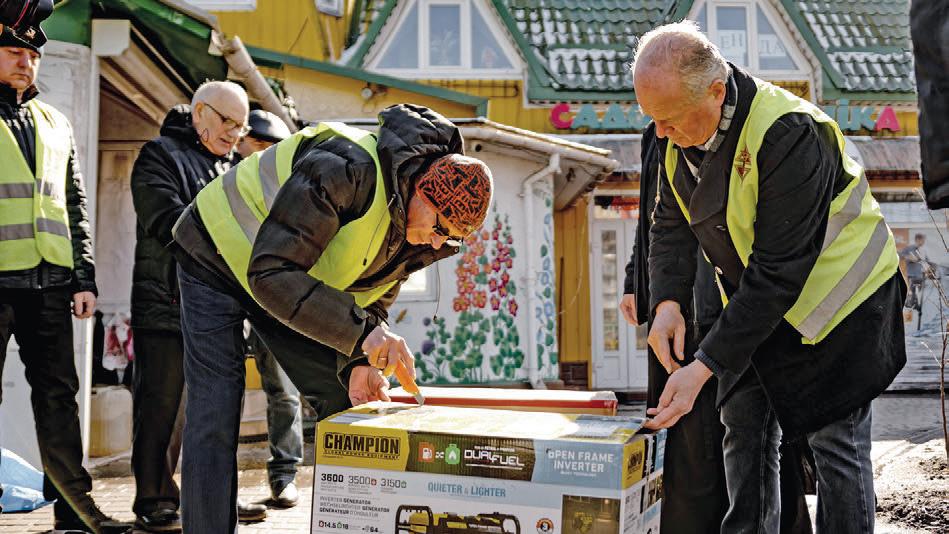 Santos Boris y Gleb en Fastiv desembalan un generador para la iglesia greco-católica ucraniana de San Demetrio. Los generadores eléctricos adquiridos por Caballeros de Colón se han entregado a varias iglesias católicas de toda Ucrania, donde los Consejos locales han establecido Centros de Misericordia parroquiales para ayudar a los civiles necesitados.