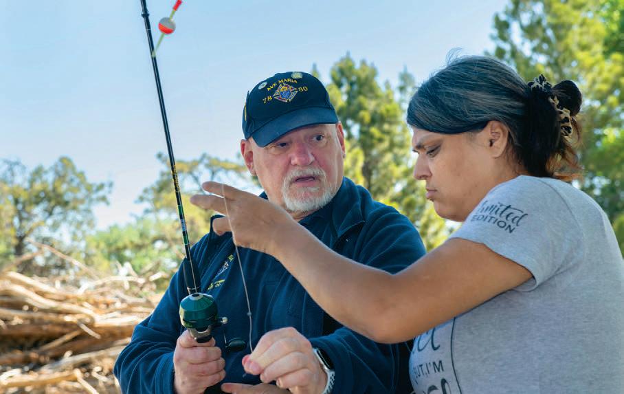 Manus Hand, chancelier du Conseil 7880 Ave Maria de Parker, au Colorado, aide Kimberly Atler à utiliser sa canne à pêche pendant le tournoi de pêche annuel du conseil pour les personnes ayant une déficience intellectuelle. Les Chevaliers ont fourni aux participants des cannes à pêche, des leurres et des appâts, les ont aidés à lancer et à démêler leurs lignes et ont servi un dîner de hot-dogs et de hamburgers. Le Conseil 7880 participe également à l’organisation du café Saint Joseph de Cupertino, une soirée mensuelle de partage de nourriture et de divertissement pour les personnes handicapées et leurs familles.