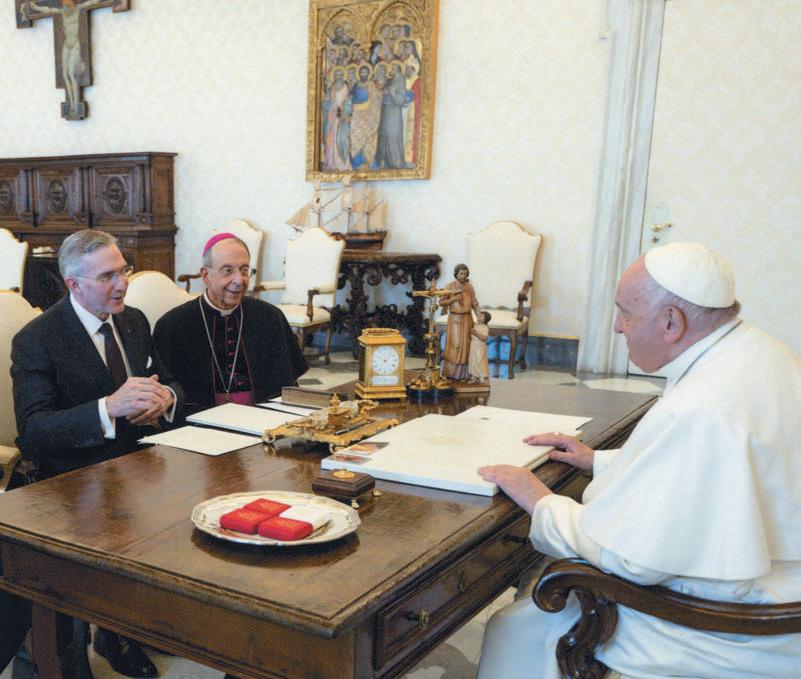 We spoke at length about our work, including our new Cor initiative. We also discussed our charity, especially our support for Ukrainian refugees. Pope Francis was grateful for everything we’re doing, and he called on the Knights of Columbus to continue advancing the Church’s mission. is is a challenge we gladly accept. We will continue to take up the mission of evangelization — in our hearts and in our communities. And we will continue our mission of charity — a charity that evangelizes.