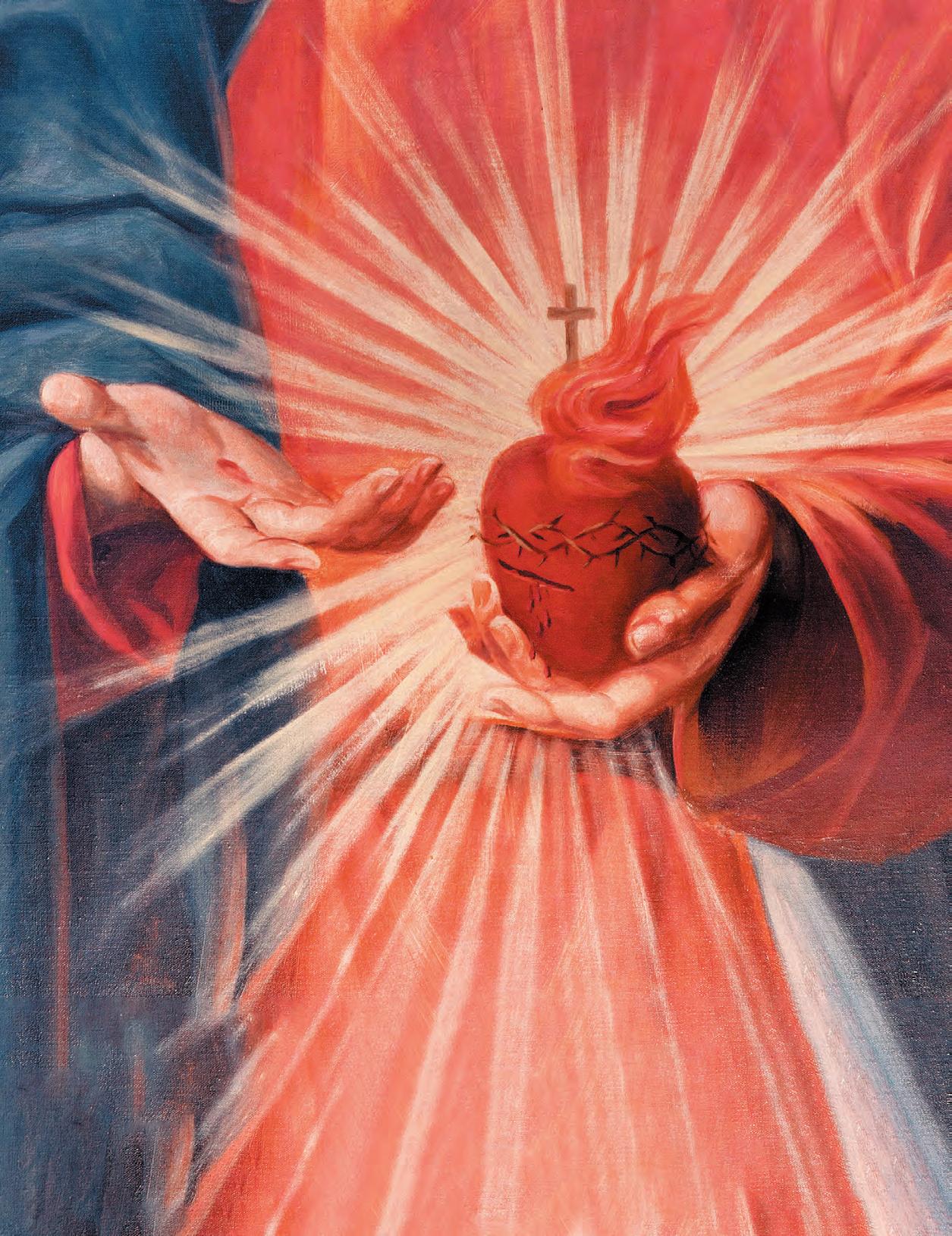 El Sagrado Corazón de Jesús aparece en un detalle de un cuadro del altar lateral de la Basílica de los Santos Apóstoles, Roma, basado en un cuadro de Pompeo Batoni de 1767.