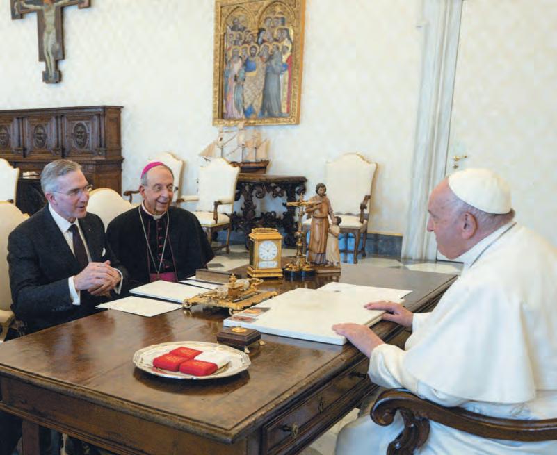 Hablamos largo y tendido sobre nuestro trabajo, incluyendo nuestra nueva iniciativa, Cor. También hablamos de nuestra caridad, especialmente de nuestro apoyo a los refugiados ucranianos. El Papa Francisco agradeció todo lo que estamos haciendo y exhortó los Caballeros de Colón a seguir avanzando en la misión de la Iglesia.