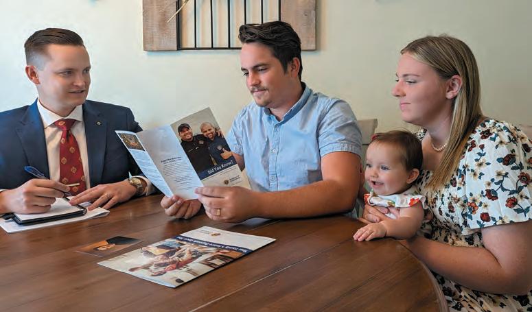 David St. Hilaire, agente de campo de la agencia Swanson en Hastings, Nebraska, habla con una familia de Caballeros de Colón sobre sus necesidades en materia de seguros.