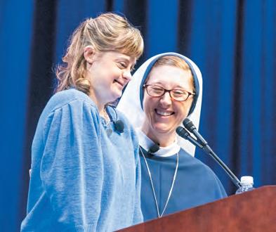 Abajo: Jóvenes de todo el país se reunieron en el Festival por la Vida antes de la Marcha por la Vida en Washington, D.C. Este nuevo evento fue copatrocinado por Caballeros de Colón y las Hermanas de la Vida. Entre los oradores estuvieron la Hermana Mary Casey O’Connor, de las Hermanas de la Vida, y su hermana gemela, Casey Gunning, atleta de las Olimpiadas Especiales.